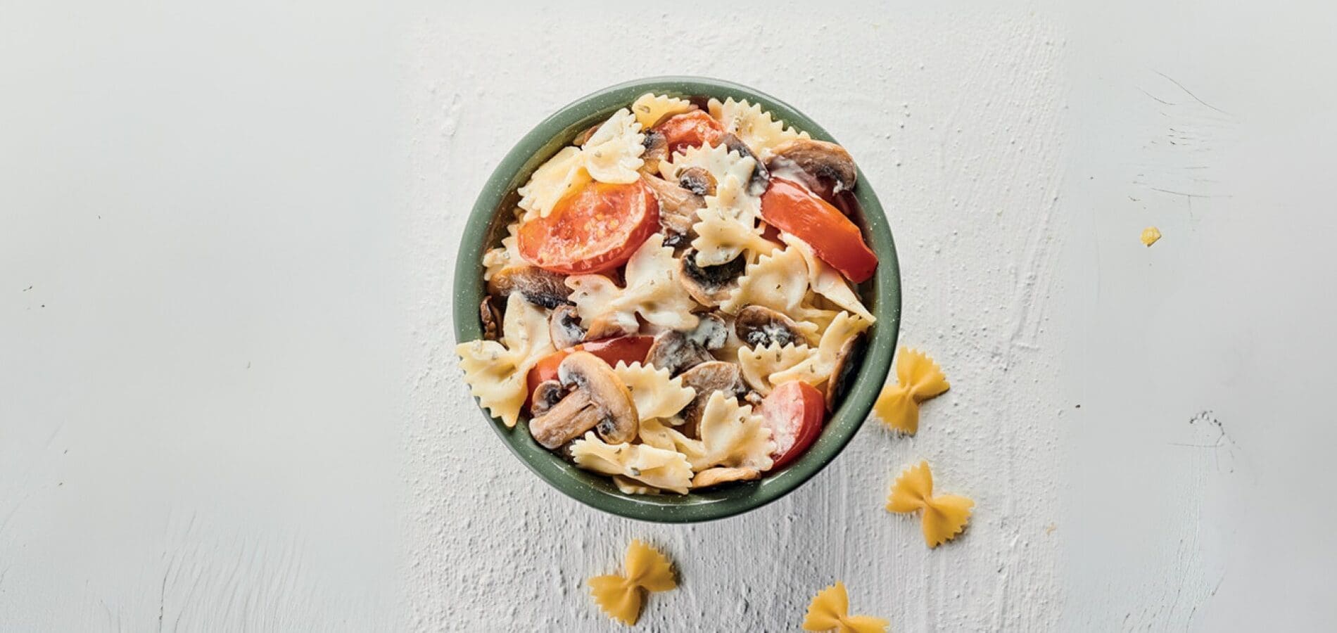 Les Farfalles aux Champignons Boursin et Tomate avec Boursin® Cuisine Ail & Fines Herbes sont une combinaison savoureuse de pâtes fraîches et de légumes savoureux. Les farfalles, cuites al dente, sont mélangées à des champignons fondants et à des tomates juteuses, le tout rehaussé par le goût crémeux et parfumé du Boursin® Cuisine Ail & Fines Herbes. Cette sauce riche et onctueuse enveloppe chaque bouchée, apportant une délicieuse harmonie de saveurs.