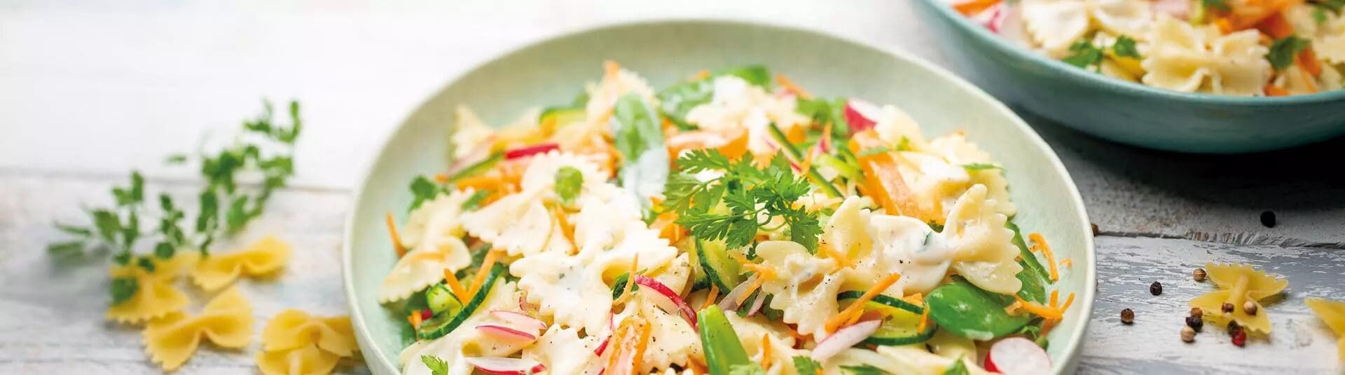 Les Farfalles de Printemps avec Boursin® Cuisine Ail & Fines Herbes sont un plat léger et rafraîchissant, parfait pour les journées ensoleillées. Les farfalles, cuites al dente, sont accompagnées de légumes de saison croquants, puis enrobées d’une sauce crémeuse à base de Boursin® Cuisine Ail & Fines Herbes. Cette pâte à tartiner onctueuse apporte une touche d’ail et d’herbes fines qui rehausse la fraîcheur des légumes, créant une expérience culinaire savoureuse et équilibrée.